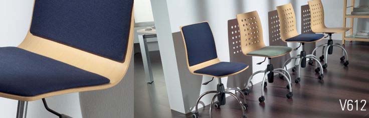 oben abgebildeten Stühle gibt es ohne Räder auch stapelbar (je nach Modell)