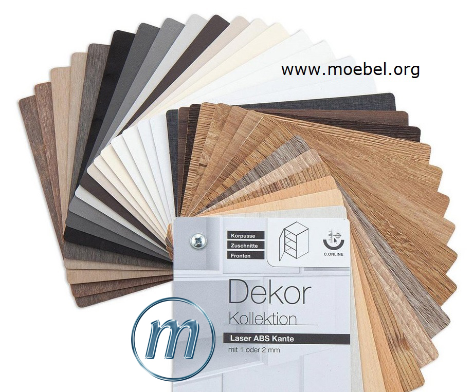 Die Dekore sind für Zuschnitte, Sonderformen, Fronten und Borde, aber auch für Korpen (für Schrankseiten und -böden, Fachböden vom einen Korpus bzw. Schrank). Bei Laser-ABS-Kanten ist die Fuge praktisch unsichtbar, d. h. super Qualität und optisch perfekt. Für manche Platten bzw. Dekore gibt es sowohl Laser-Kante als auch PU-Kante, für andere Platten entweder Laser-Kante oder PU-Kante. Die Stärke der Platte ist auch variabel, das heißt es gibt nicht jedes Dekor in jeder Stärke (Infos anfordern).