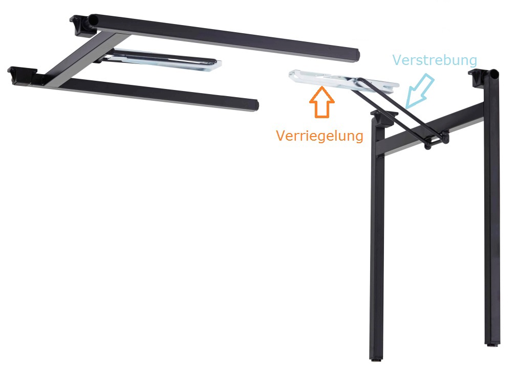Stabilität beim klappbaren Tisch. Zusätzlich ist es hier möglich unten zwischen den