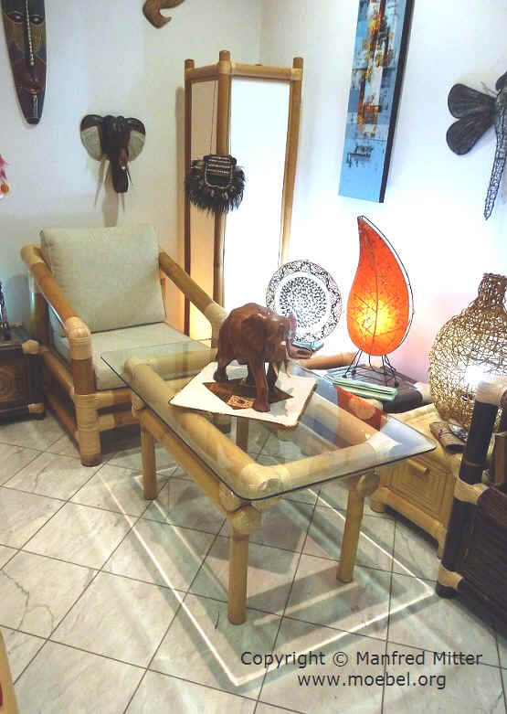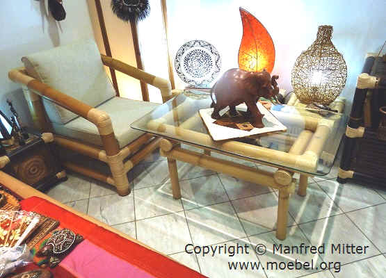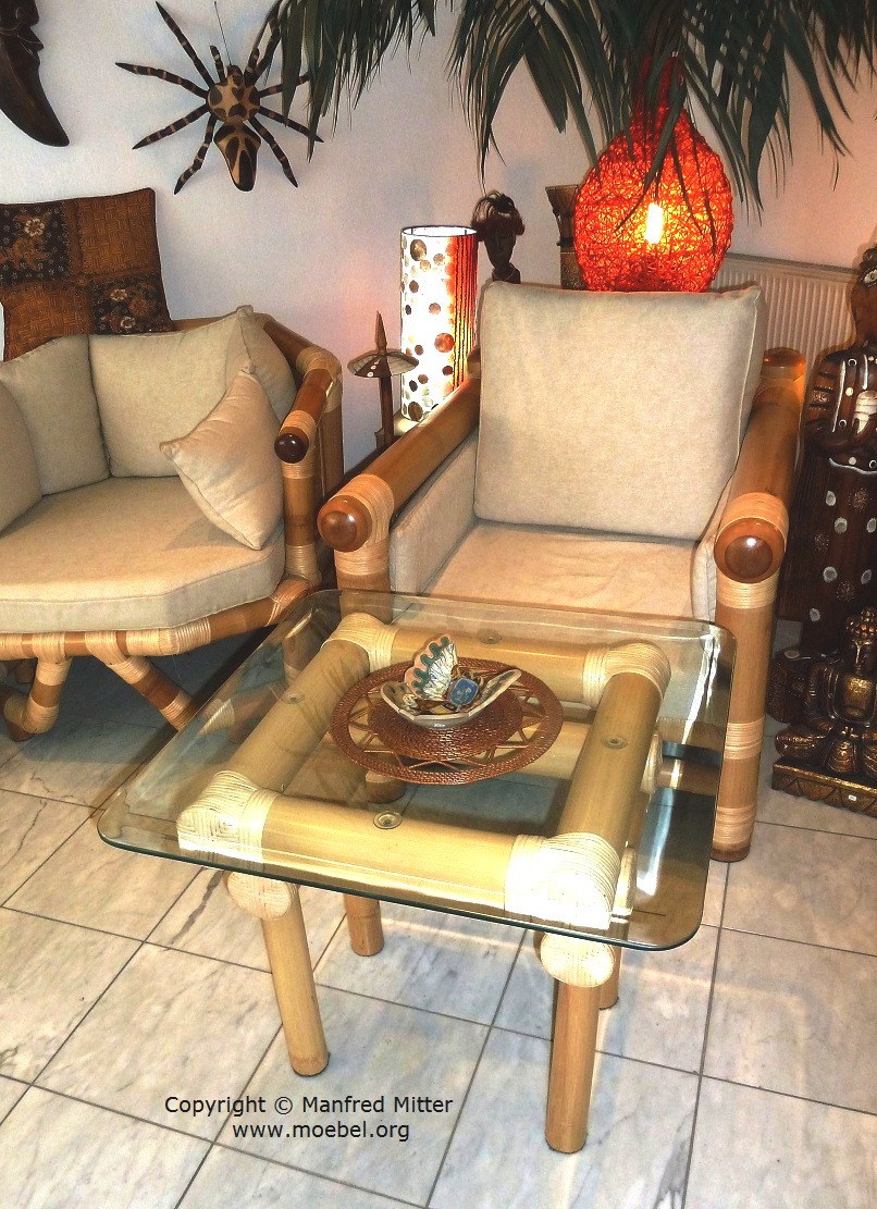 Tische und Sessel aus Bambus, Sitzgarnituren für den Wintergarten, für das Wohnzimmer, Gästezimmer, Jugendzimmer oder für ein Hotelzimmer