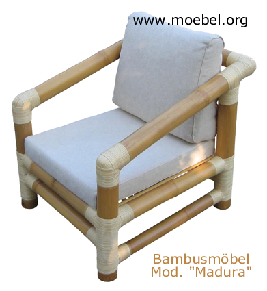 Ein Sessel / Fauteuil für viele Räumlichkeiten, Bambus-Möbel für den Wohnbereich (Wohnzimmer, Kinderzimmer, Gästezimmer, Fremdenzimmer oder Wintergarten) und für die Hotelausstattung / Objekte. Design in guter Qualität, formschöne und stabile Bambusmöbel zu erschwinglichen Preisen und in schöner Verarbeitung