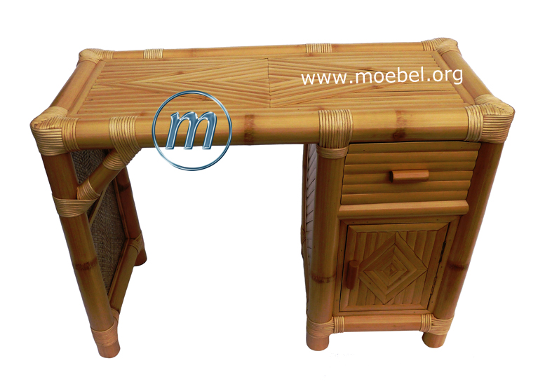 Praktische Möbel mit natürlicher Ausstrahlung und Charme, ein netter Schreib- bzw. Arbeitsplatz im privaten Büro, im Kinderzimmer, im Arbeitszimmer oder im Gästezimmer bzw. Hotelzimmer. Diese Schreibtische und Stühle (aus Holz oder Bambus) können sich überall sehen lassen. Unsere neueste Komposition, der Schreibtisch mit Lade und Tür: