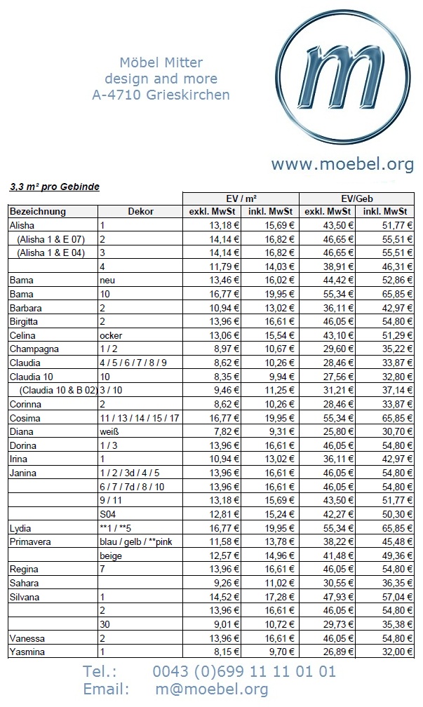 Preise Wandbeschichtungen / Baumwollputz (Stand 11-2011):