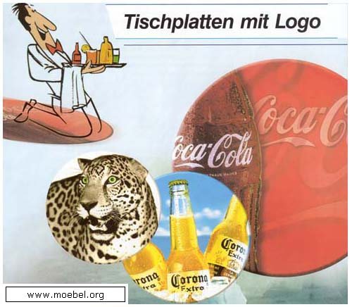 Ein Design-Dekor für Tischplatten (Indoor und Outdoor-Möbel), so eine wetterfeste und wasserfeste Tischplatte passt überall, drinnen und draußen, in einem Lokal oder im privaten Garten, auf Terrassen-Tischen und für Gastronomiemöbel / Hotelmöbel, für Seminare, Bartische, Bistrotische, Tresen in Restaurants oder Cafes, für Tischplatten für Tische in Messehallen und für Outdoor-Veranstaltungen