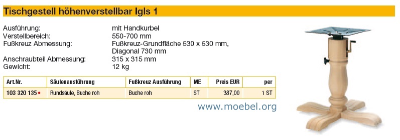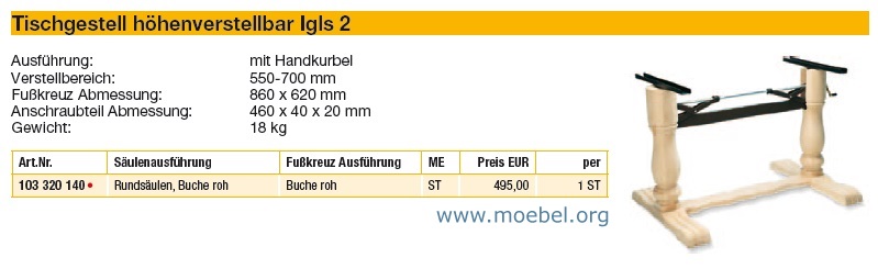 Höhenverstellbare Tischgestelle mit Handkurbel, Igls 1 und Igls 2:
